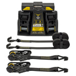 The SmartStraps Tactical ratchet tie down is a commercial duty tie down used to used to secure the heaviest loads often hauled on a large trailer or flatbed such as large equipment, larger tractors, and vehicles. The tie downs are stronger and more user-friendly than standard ratcheting tie downs. They feature extra long webbing on attachment end for hard-to-reach anchor points and a built-in, soft-tie loop to secure cargo without damaging paint or chrome. The convenient securing strap makes it easy to tie off excess webbing or keep straps bundled after use. The diamond knurl handle allows for increased grip and the rubber bumpers along the ratchet protect your cargo from scratching. The strap features precision gearing thanks to more teeth along the sprocket of the ratchet, allowing the tension to stay under control when securing loads. Included Zerust material acts as a rust-inhibitor to improve the longevity of the ratchet.